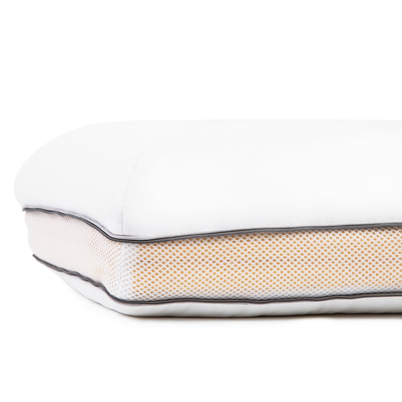Conforming memory foam layers topped with a layer of soft microfiber filling create a miraculously comfortable, supportive pillow. A unique two-sided design removable inner layers allow you to customize your pillow height firmness, while cooling fabric, air channels, a vented gusset help you keep cool all night long.