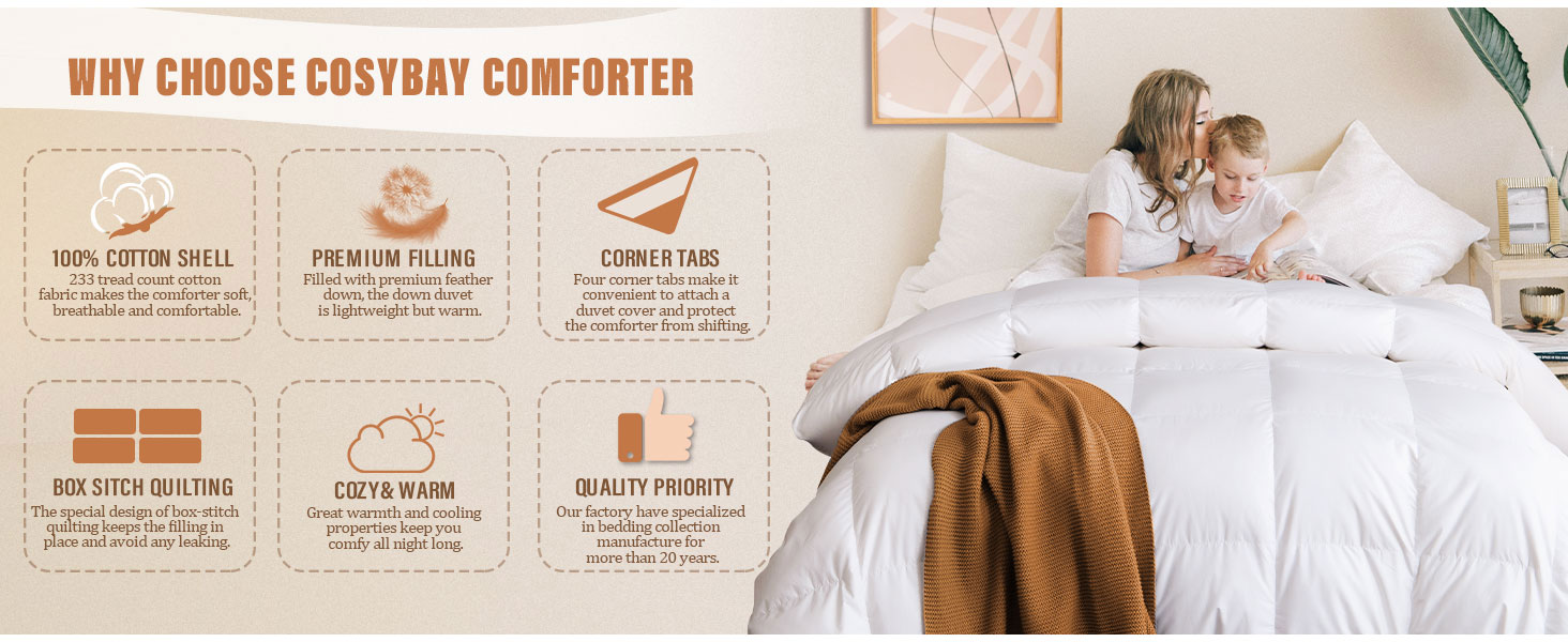 All Season White Down Duvet - Luxurious Hotel Bedding Comforters with 100% Cotton Cover - Queen 90 x 90 Inch